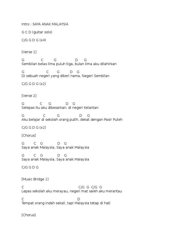 Saya Anak Malaysia Karaoke Version Bahasa Malaysia Chords Chordify
