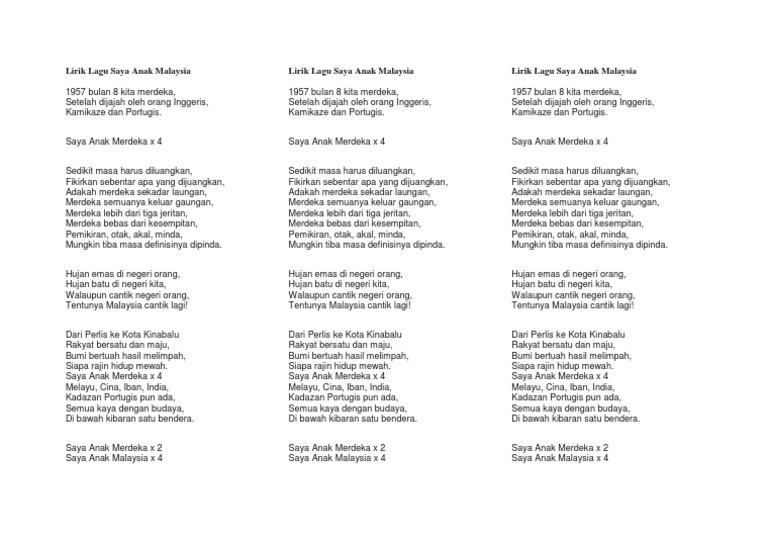 Saya anak malaysia lirik. Saya anak merdeka x 4. Saya anak malaysia saya anak malaysia saya anak malaysia saya anak malaysia. Saya anak malaysia x4.