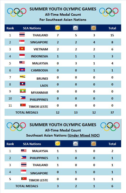 Sea Sports News Summer Youth Olympic Games All Time Medal Tally