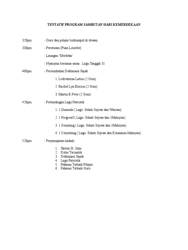 Koleksi lagu lagu patriotik semperna bulan kemerdekaan hari kebangsaan. Lirik lagu tanggal 31 surdiman lirik lagu bagi tanggal 31 bualn 8 57 hari yang mulia hari yang bahagia sambut dengan jiwa yang merdeka. Sehati sejiwa salam kemerdekaan ke 59.