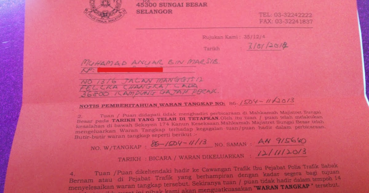 Penulis membahagikan keadaan atau situasi bagaimana waran tersebut diperolehi kepada 3 peringkat iaitu di peringkat penyiasatan perbicaraan dan selepas. Berita baik di mana bersempena hari bersama pelanggan jabatan siasatan penguatkuasaan trafik jspt kuala lumpur polis diraja malaysia pdrm mengumumkan akan memberi diskaun sehingga 50 bagi saman trafik bermula hari ini hingga 9 november ini dari jam 8 30 pagi hingga 4 30 petang. Menurut sumber harian metro waran tangkap juga sudah dikeluarkan kepada penyanyi lagu syinta gila itu selepas dua kali gagal hadir pada prosiding yang dijalankan.