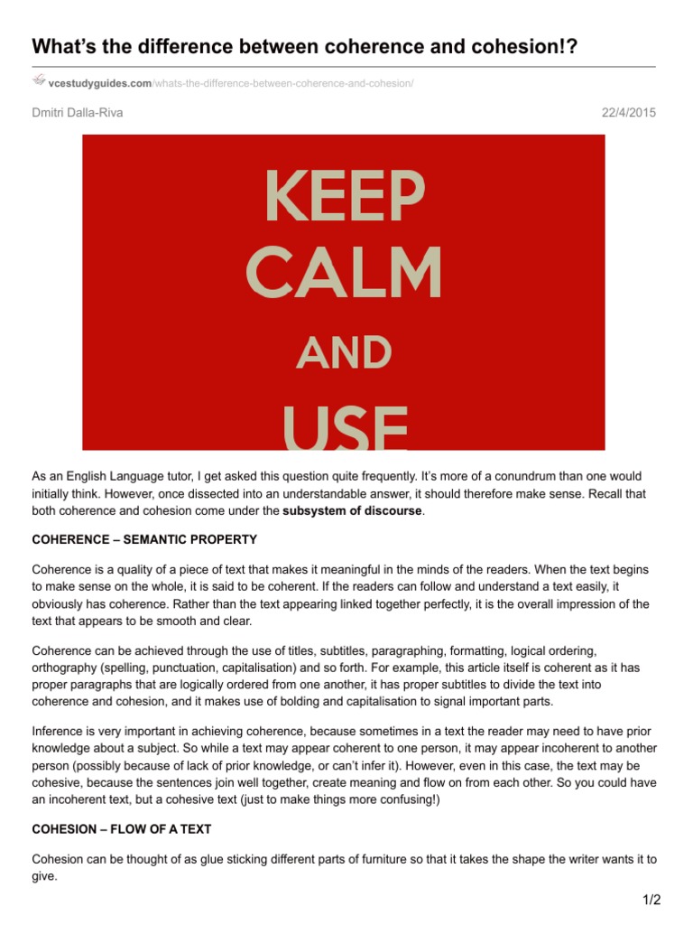 Whats The Difference Between Coherence And Cohesion Pdf Linguistics Communication