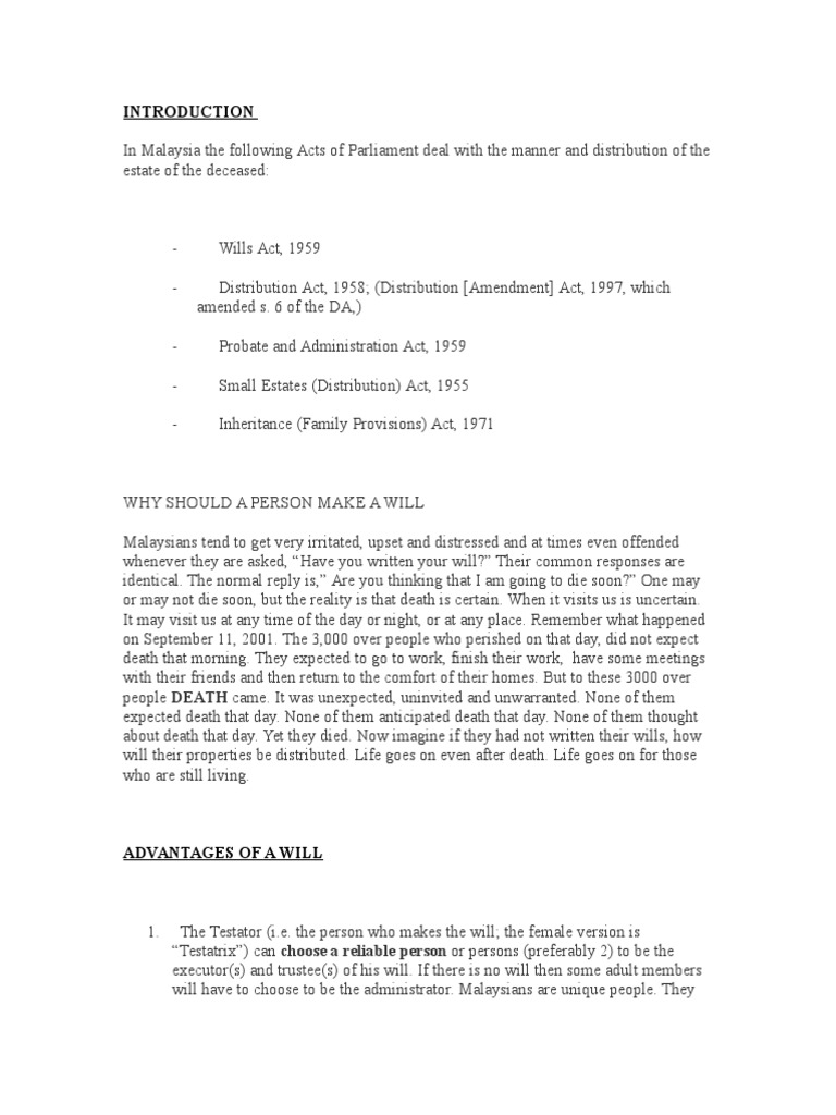 Small estate distribution act malaysia pdf. Applications are to be made at the estate distribution unit of the department of the director general of lands and mines jkptg or the land office where the deceased s immovable property is located. 2 this act shall apply to peninsular malaysia only. Interpretation part ii administration of small estates 3.