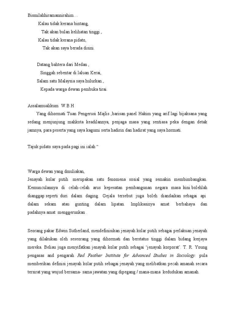 Definisiperbuatan salah laku yang dilakukan olehgolongan pertengahan atasan yang brsangkutpaut dengan bidang tugas mereka t. Sejak belakangan ini isu mengenai rasuah sering menjadi tajuk utama di semua media massa baik di media cetak mahupun media elektronik. Jenayah jenayah lain dan keadaan ini bukan hanya berlaku di malaysia tetapi juga di seluruh dunia.
