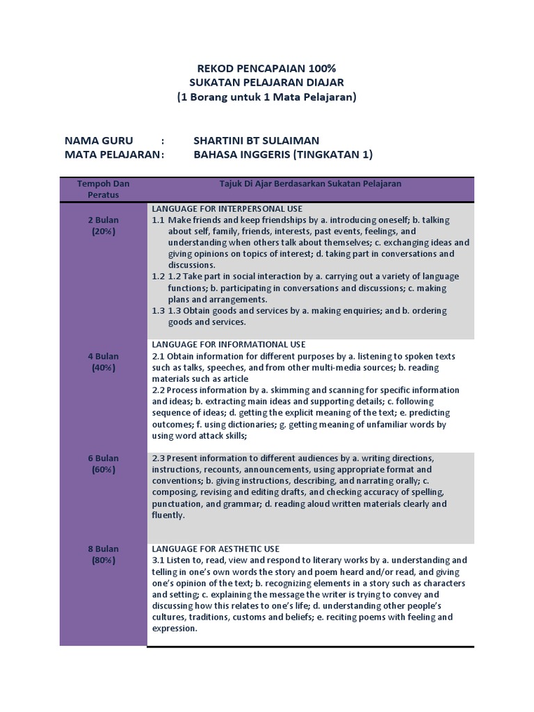 Sukatan Pelajaran Bahasa Inggeris Tingkatan 5 Sumber Pendidikan