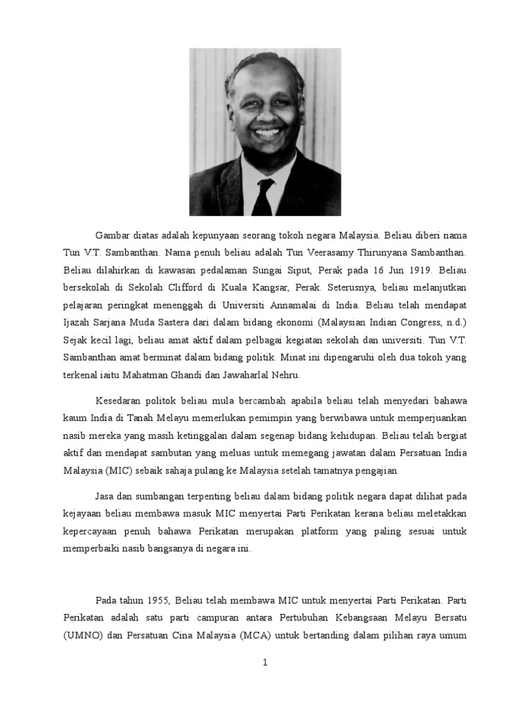 Sambanthan tokoh yang berperanan besar dalam memperjuangkan kemerdekaan dan menyatukan masyarakat majmuk di negara ini pasti bermain di bibir rakyat. Pada 31 ogos 1957 apabila kemerdekaan dicapai tun v t. Sambanthan touted the idea of a social co operative to help plantation workers during the british land sell off.