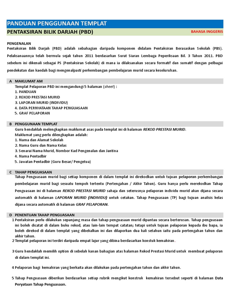Panduan Penggunaan Templat Pelaporan Pentaksiran Bilik Darjah Pbd