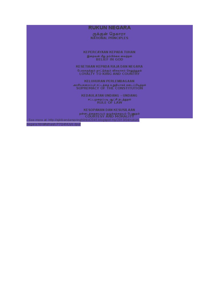 Rukun Negara In Tamil Docx Document