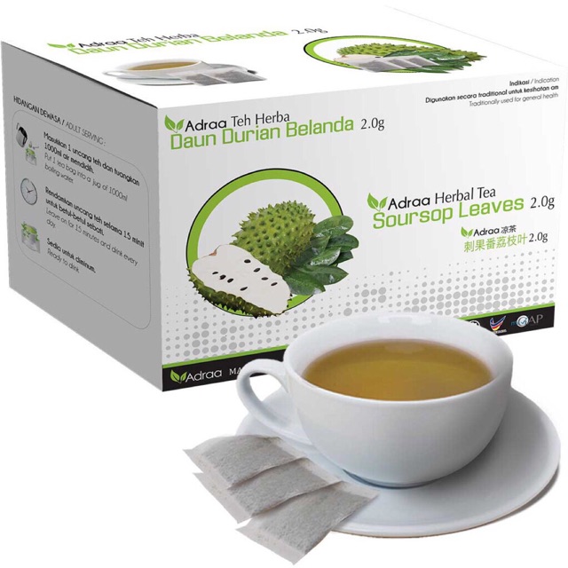 Teh daun durian belanda. Ada beberapa lokasi di dunia yang percaya ada khasiat daun durian belanda termasuk mampu mengawal penyakit kencing manis bertindak sebagai antibiotik dan juga mengurangkan keradangan. Ujung dari daun ini lancing dengan tekstur permukaan daun yang kasar dan melengkung ke dalam. Rugi tak amalkan minum teh daun durian belanda minuman menakjubkan bukan sekadar membunuh sel kanser.