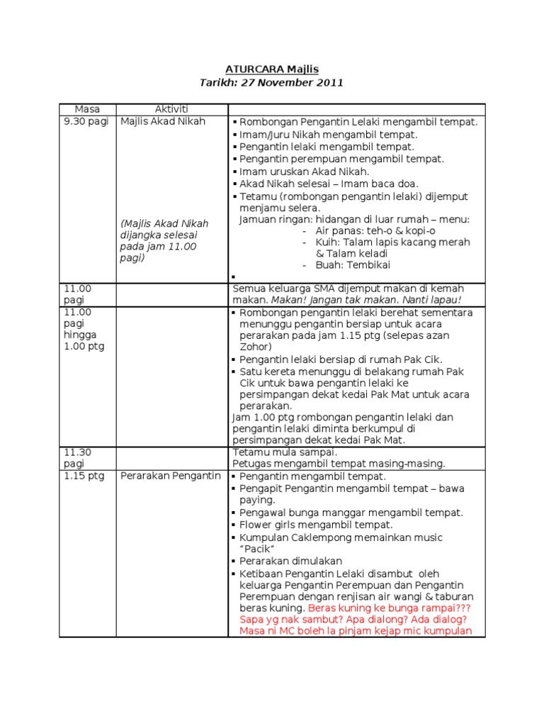 Tentatif Program Contoh Aturcara Majlis Perkahwinan