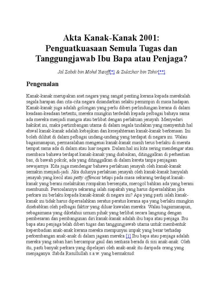 Akta Kanak Kanak 2001 Ismp Pendidikan Awal Kanak Kanak Studocu