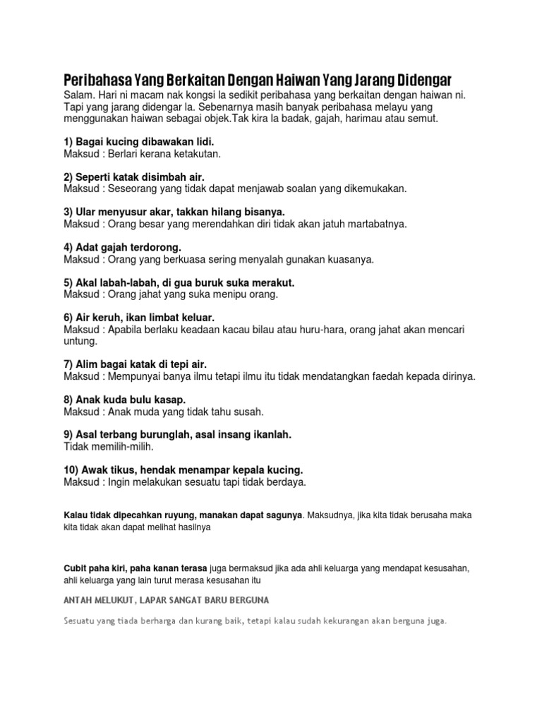 Peribahasa Yang Berkaitan Dengan Haiwan Yang Jarang Didengar