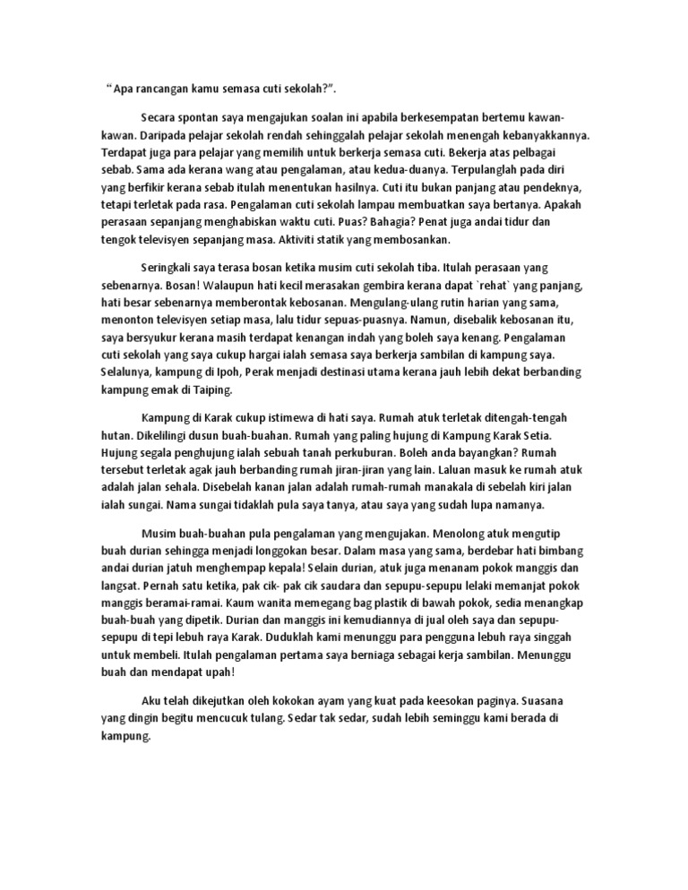 Contoh Karangan Pengalaman Semasa Cuti Sekolah Pt3