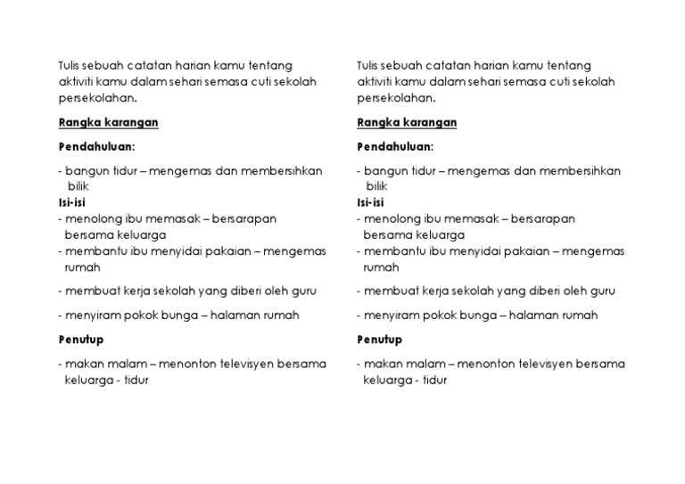 Tulis Sebuah Catatan Harian Kamu Tentang Aktiviti Kamu Dalam Sehari Semasa Cuti Sekolah Persekolahan