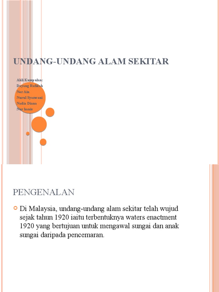 Undang undang alam sekitar. Group hse bphb menyambut baik perlaksanaan gsr ini dan komited untuk melaksanakan nya pada masa akan datang. Melalui langkah penguatkuasaan undang undang jabatan alam sekitar jas merupakan jabatan di bawah kementerian sumber asli dan alam sekitar nre yang memainkan peranan untuk mempertingkatkan penguatkuasaan akta kualiti alam sekeliling 1974 dan peraturan peraturan di bawahnya yang menyekat pencemaran dari punca tetap point sources dengan izin. Pengenalan akta kualiti alam sekitar 1974 berikutan persidangan stockholm 1972 merupakan usaha untuk menghasilkan inisiatif perundangan menyeluruh dalam urusan dengan perkara berkaitan dengan alam sekitar.